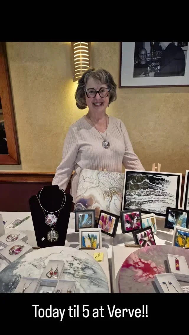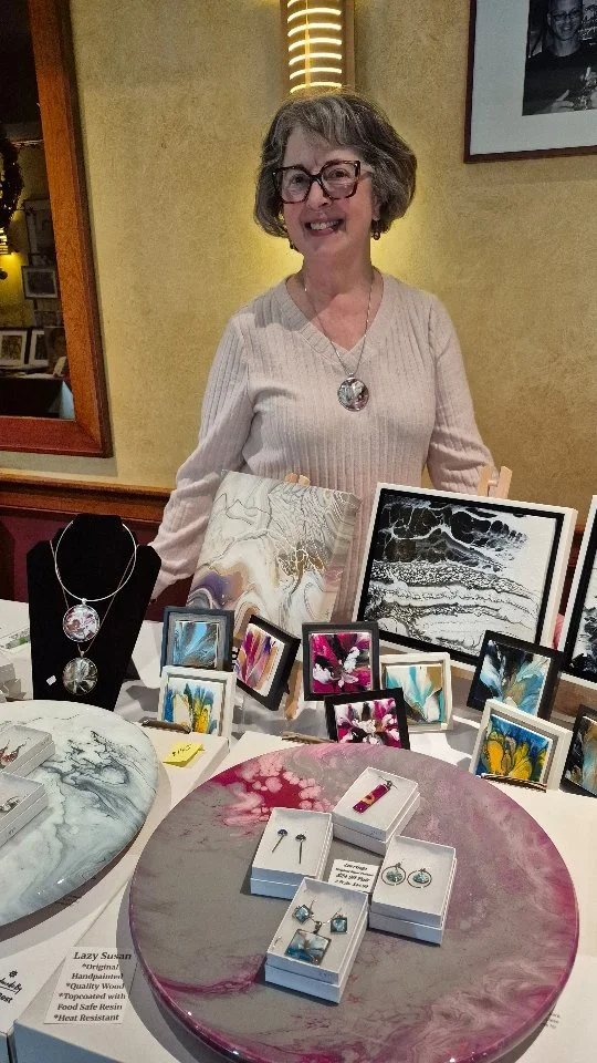 In my studio, I create fluid pour works of art. It’s a unique process that allows me to play, experiment, and constantly explore. No paintbrushes are used!